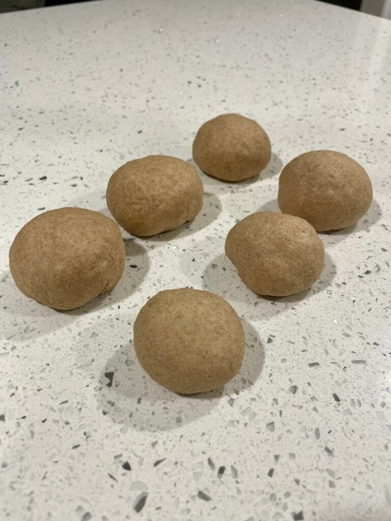 - When you have shaped six individual dough balls, let the dough balls rest on the counter for 5 minutes before rolling.