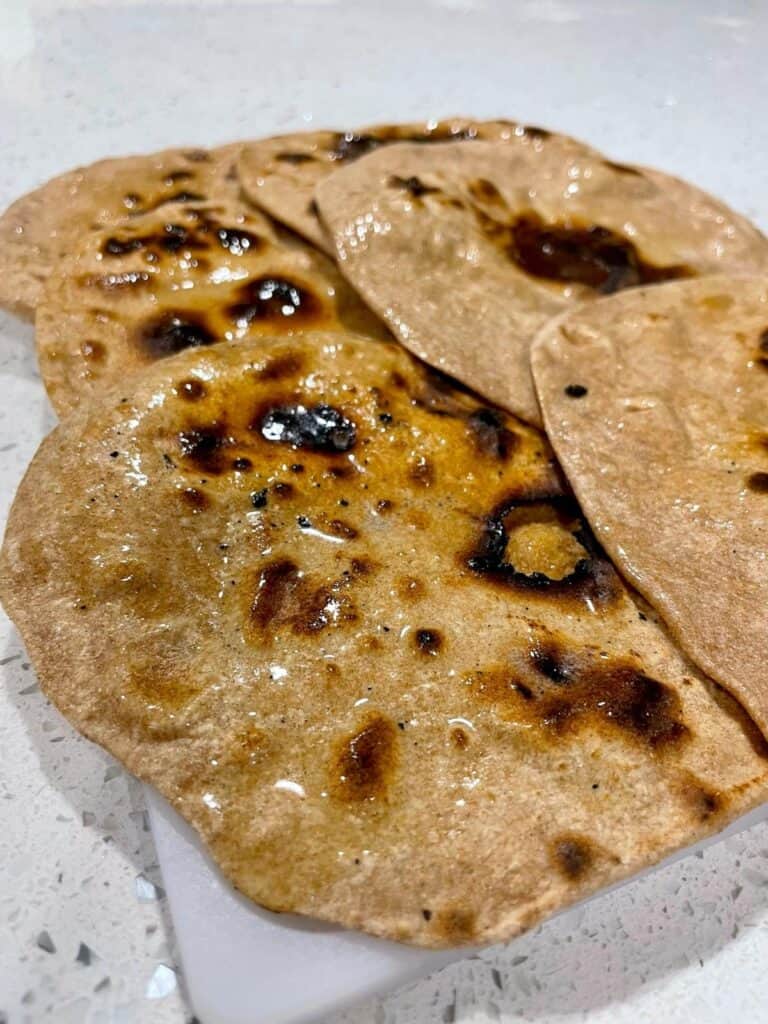 This sourdough roti is one of the quickest and easiest whole wheat flatbreads you can make. It's perfect to eat alongside a variety of curry dishes, and it only requires four ingredients: whole wheat flour, water, salt, and sourdough starter or discard.