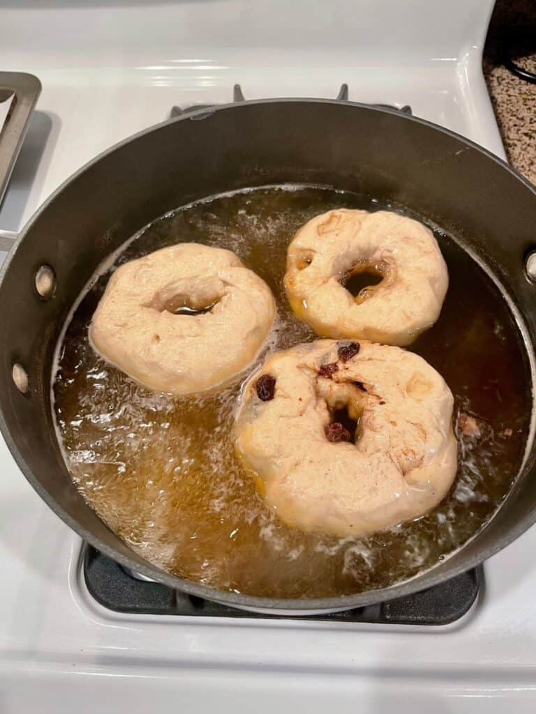 Boiling and Topping the Cinnamon Raisin Sourdough Bagels