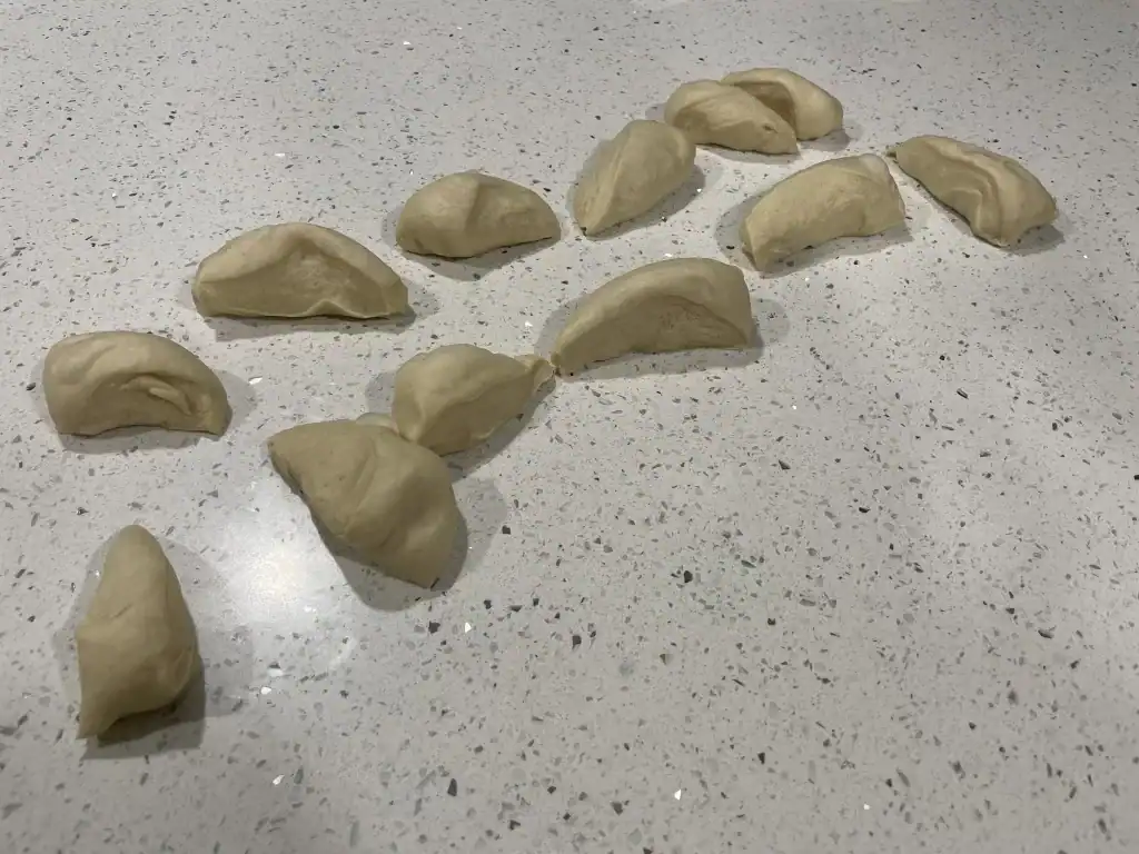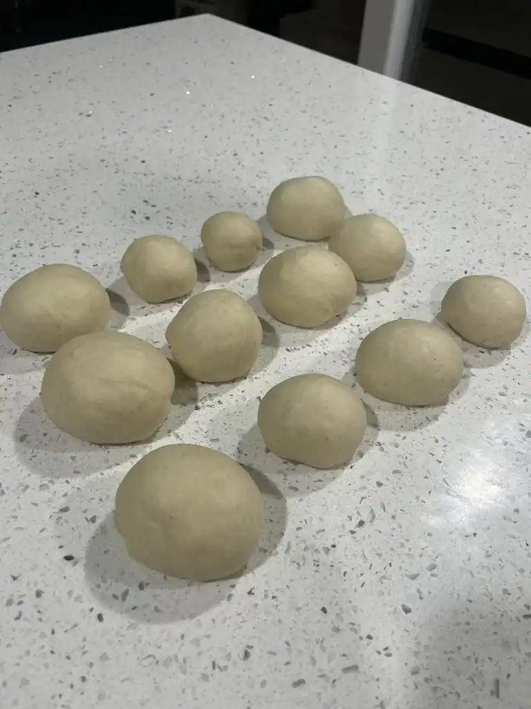 • Divide the dough into 12 equal sized pieces (around 73 grams each by weight if you are using a scale).