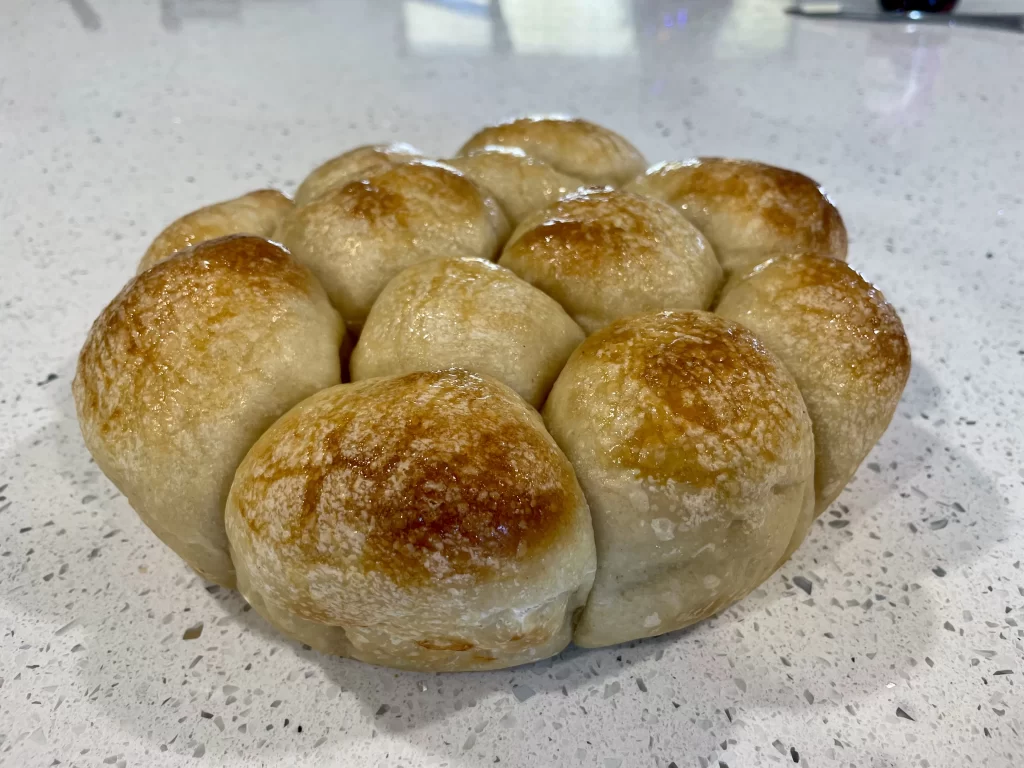 • Remove the baked rolls from the cake pan onto a cooling rack. Let the the rolls cool for at least 30 minutes and then brush them right before serving at your Thanksgiving or Christmas dinner.