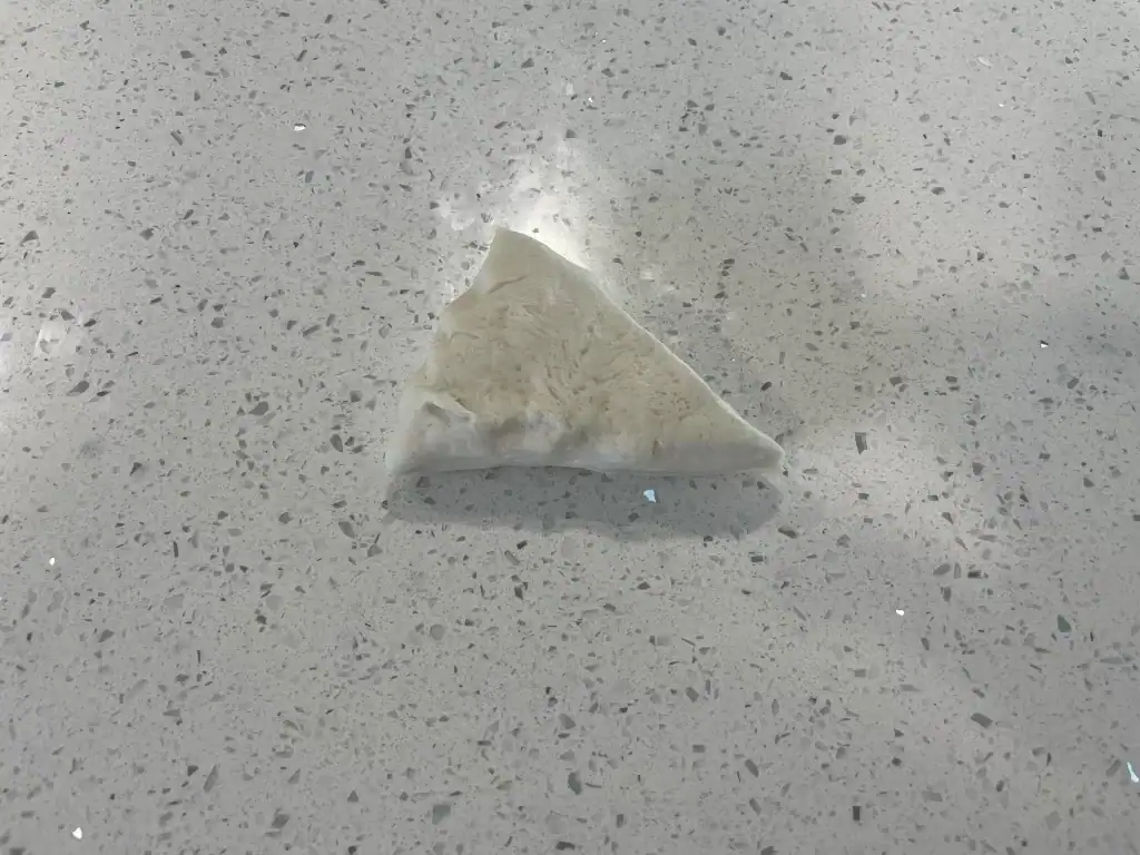 - Flip the piece of dough over so that the sticky side is facing up.