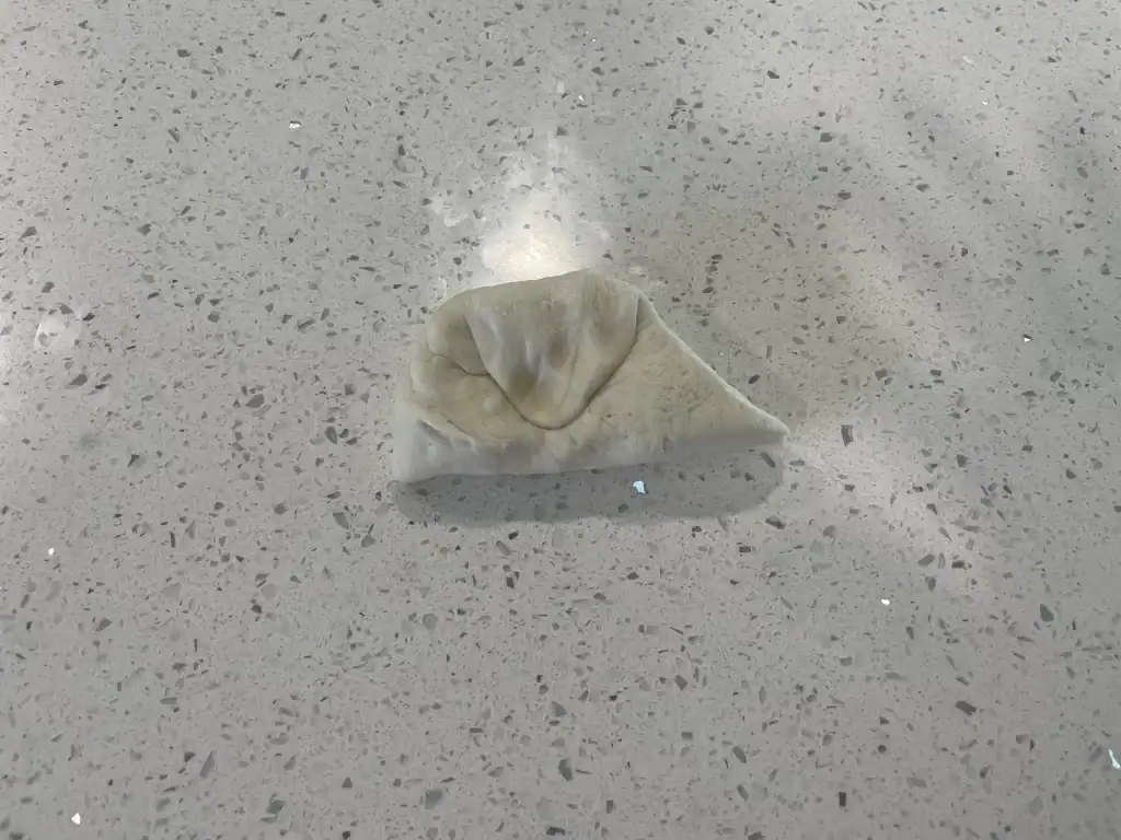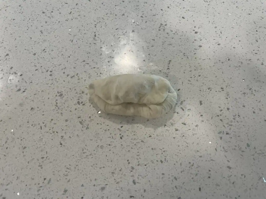 - Flip the left end of the dough over the right end of the dough.