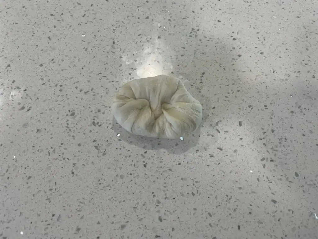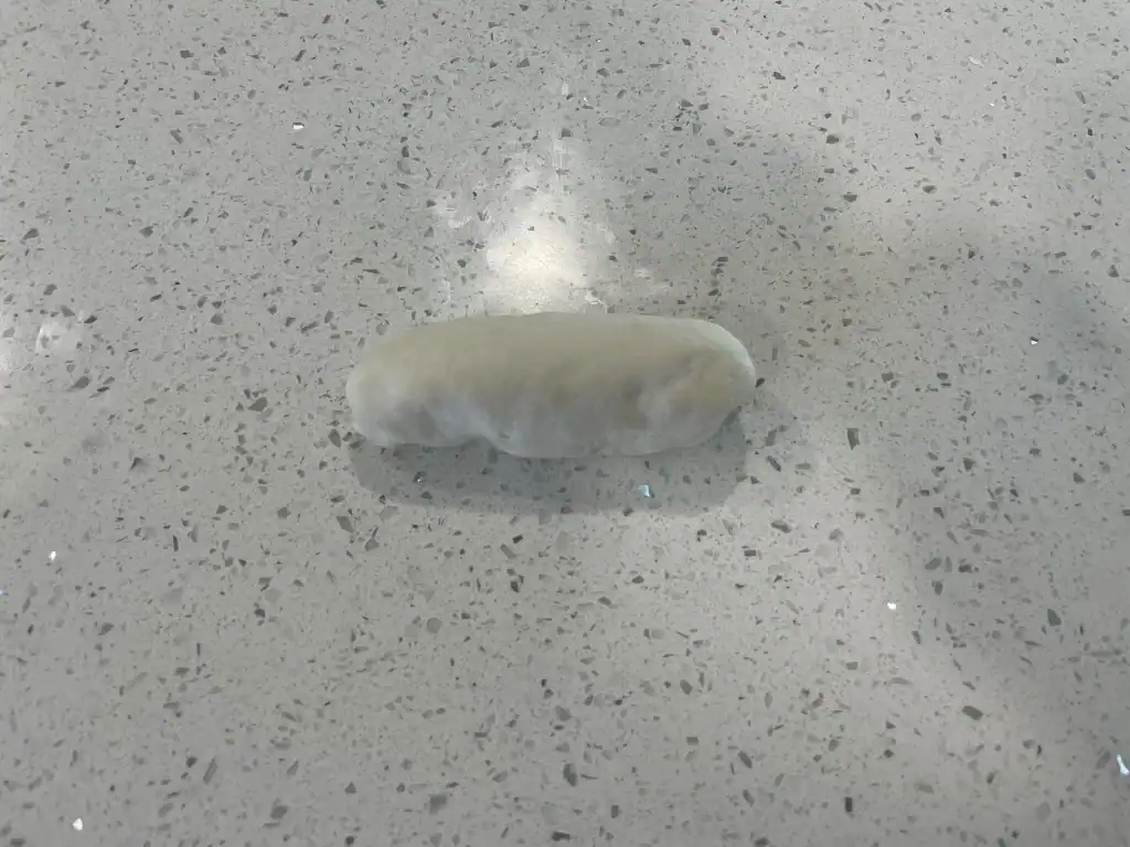 - Tuck the edges of dough into the center and then gently roll the dough into a thick cylinder.