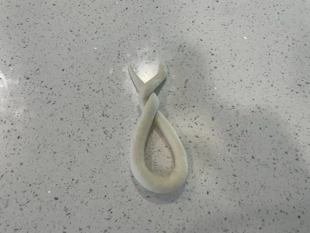 - Twist the dough one more time so that the left end goes over the right end.
